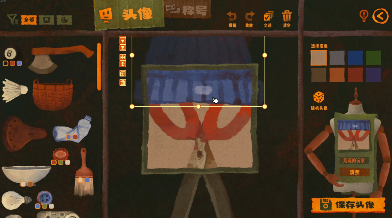 因为在《破烂艺术家》这款游戏里,开局就给予了玩家自由创意的权限,头像由玩家用系统提供的物品自行拼出。这也就是开头对话的由来。