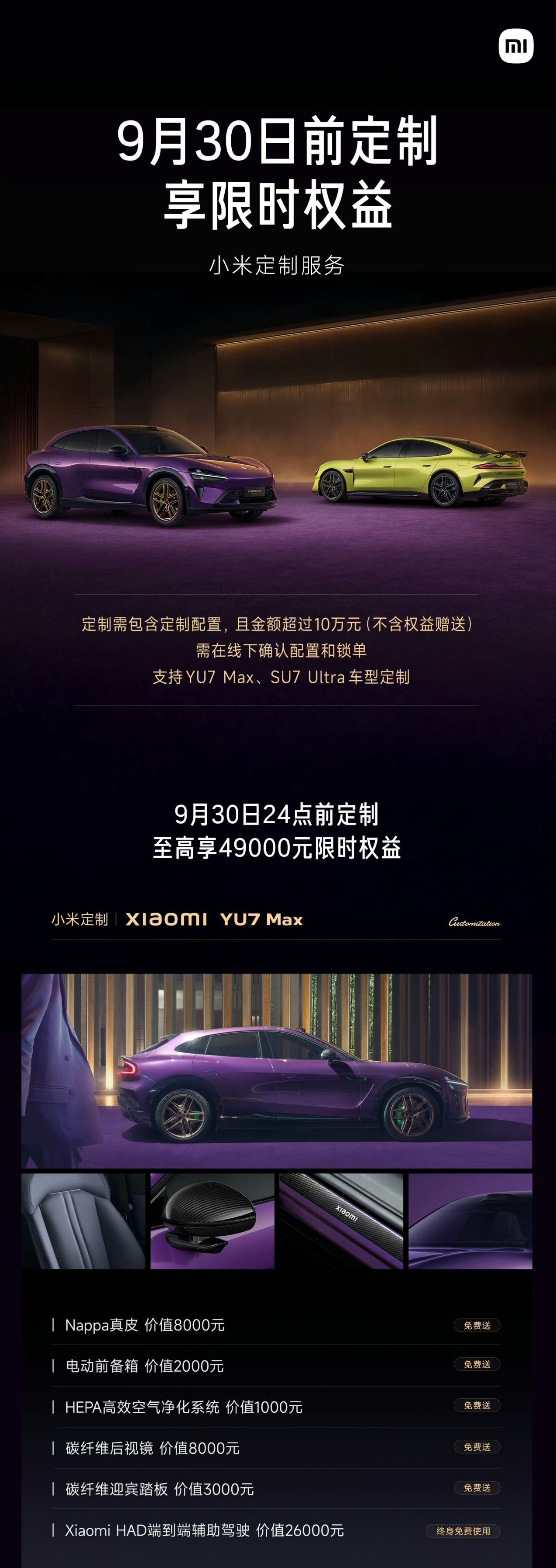 目前能參與這項定製的是YU7 Max和SU7 Ultra兩款高端車型。整個定製過程需要在“小米汽車定製中心”完成,你得親自去確認好每一個細節,然後線下完成鎖單。這種略帶儀式感的流程,倒也符合它專屬定製的份量感。