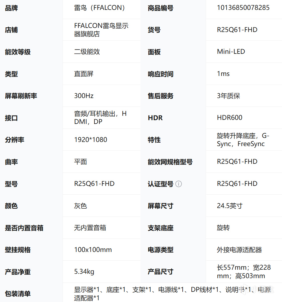 不過這些功能雷鳥R25Q61-FHD也支持——總的來說你想要在性價比顯示器裏拿到的指數它基本全都有