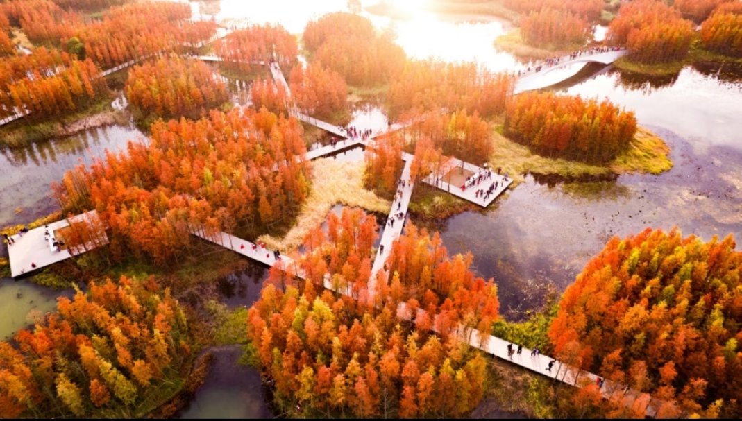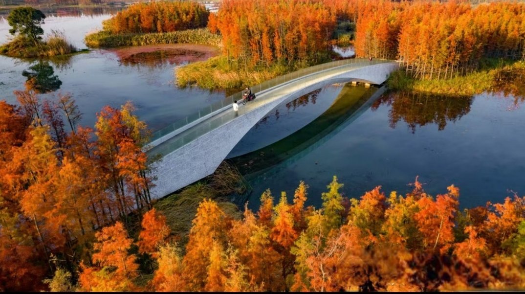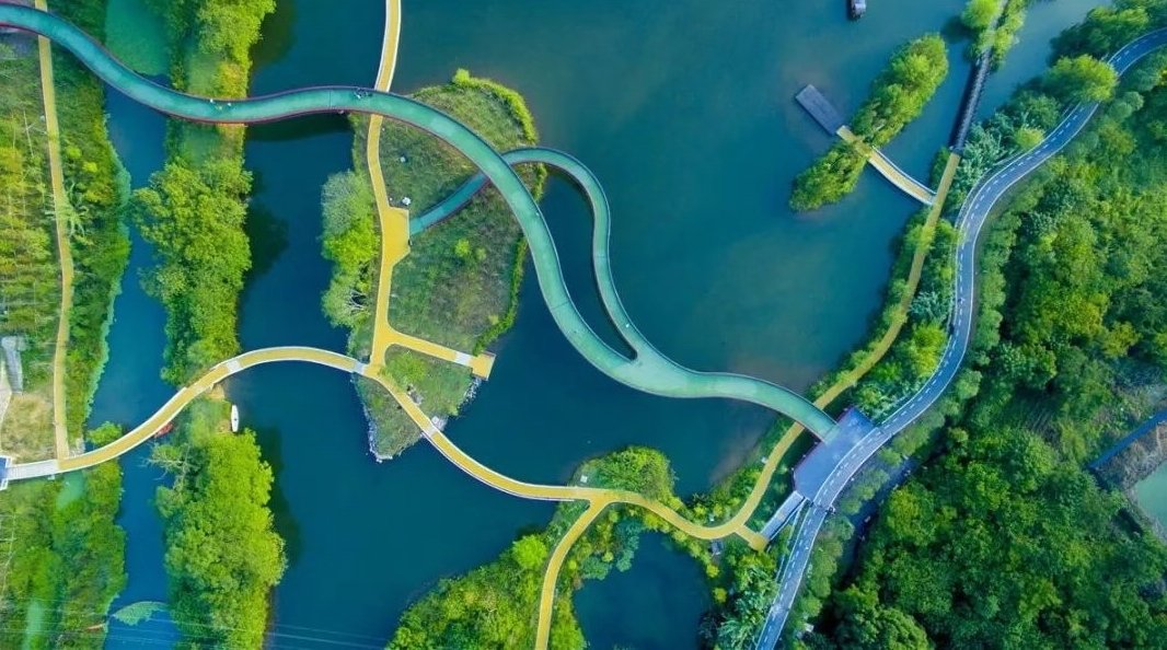 俞孔坚团队却提出:“不破坏原有植被,用一条栈道连接人与自然。”他们设计出一条红色玻璃钢栈道,如同灵动丝带在河谷间蜿蜒,既没有破坏原有生态,又为市民提供了亲近自然的通道。项目建成后,昔日废弃河道重焕生机,“红飘带”也成为生态设计的经典符号。