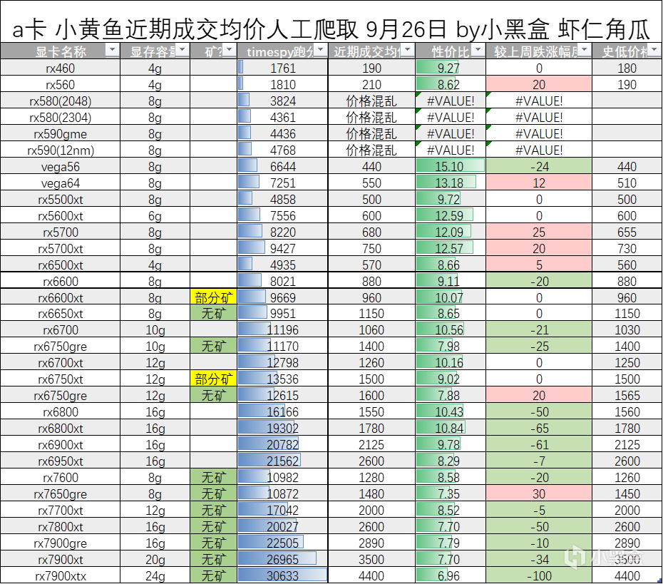 a卡全面下跌,個別性價比型號,如5700 5700xt小幅度反彈。