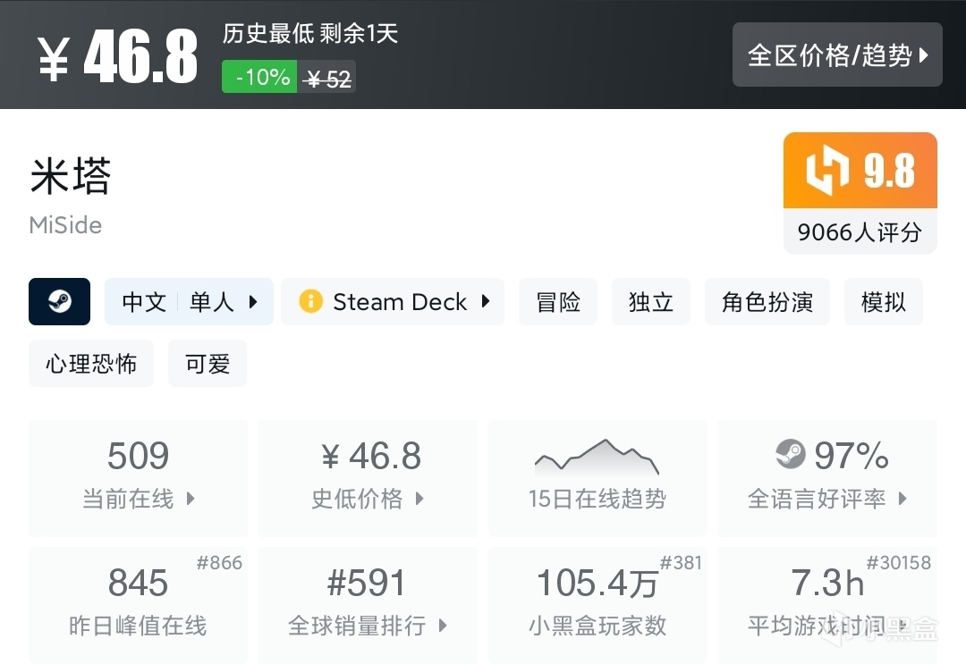 個人強推,致敬了逆轉裁判,但有家國情懷,我玩的過程都掉小珍珠了。秋促基本不會更低了,放心入