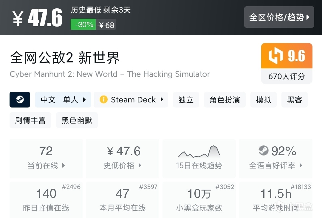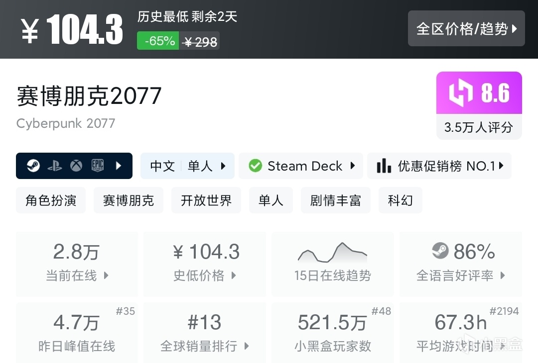 評分很低,主要原因是首發太貴和太快永降,背刺了一大波玩家。遊戲質量還是不錯的。