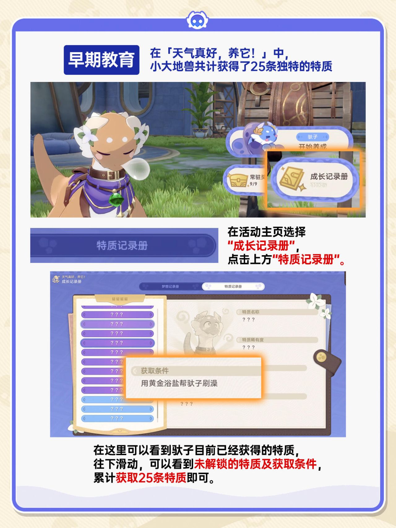 4⃣「早期教育」需要大地兽累计获得25条特质。