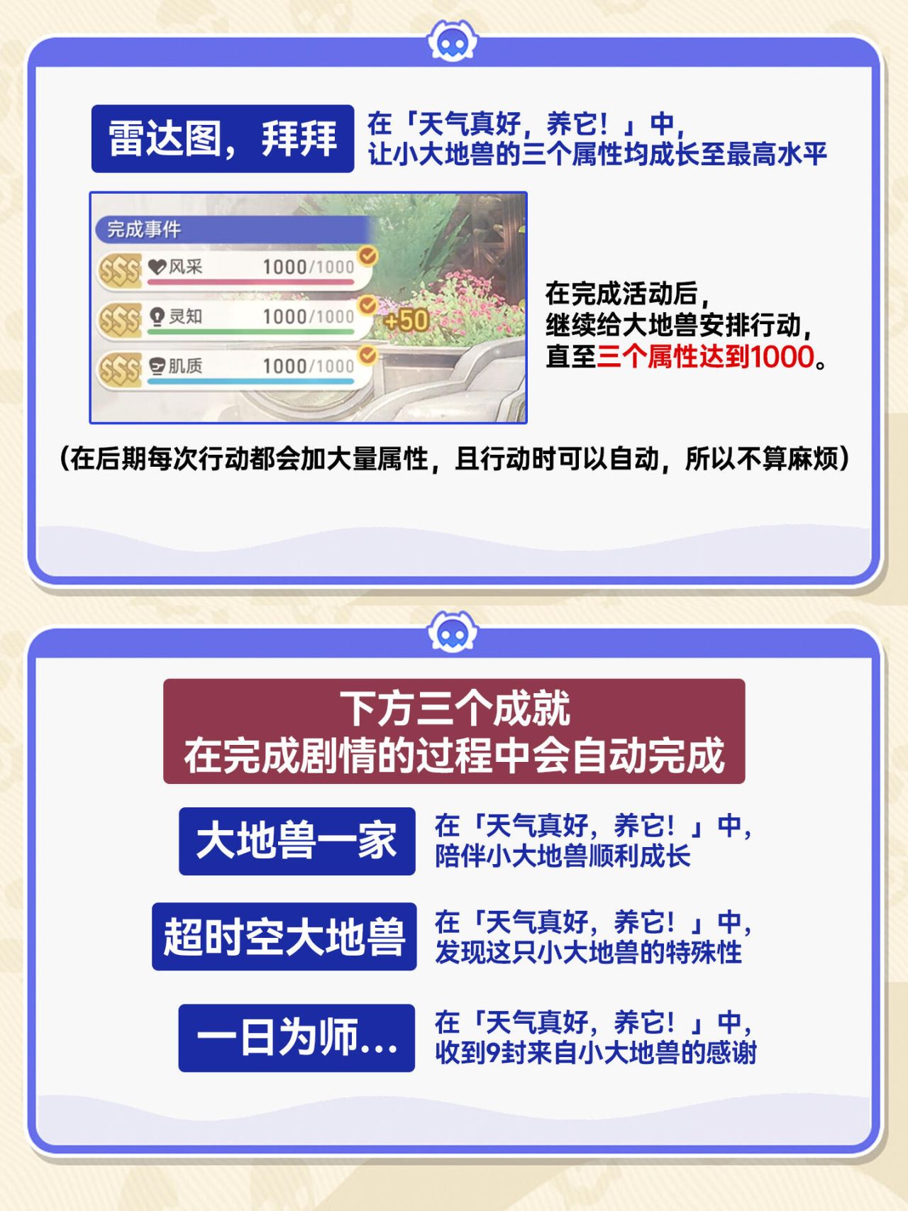 2⃣「雷达图,拜拜」需要在活动完成后继续将大地兽三个属性成长到1000