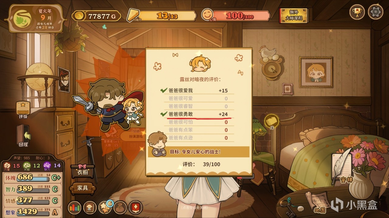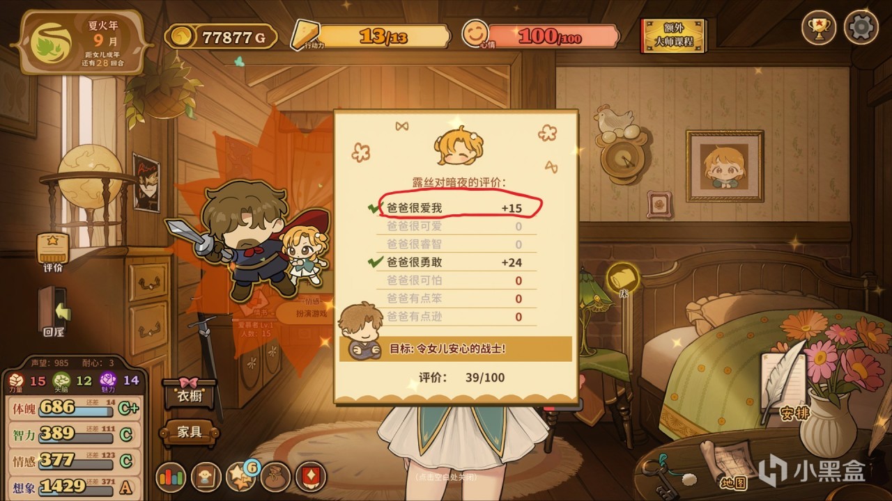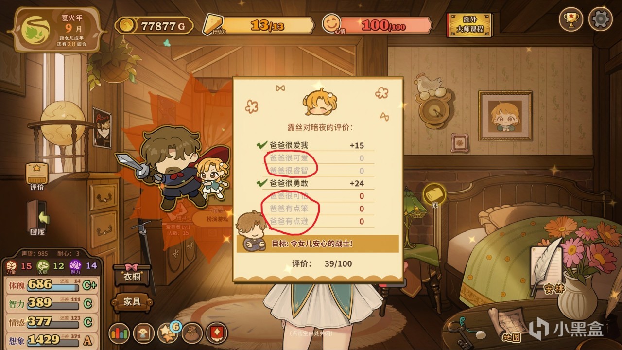 與爸很萌萌同理,需要在夏火年1月時,選擇成爲“讓女兒信任的導師”,且“爸爸很睿智”分數大於25