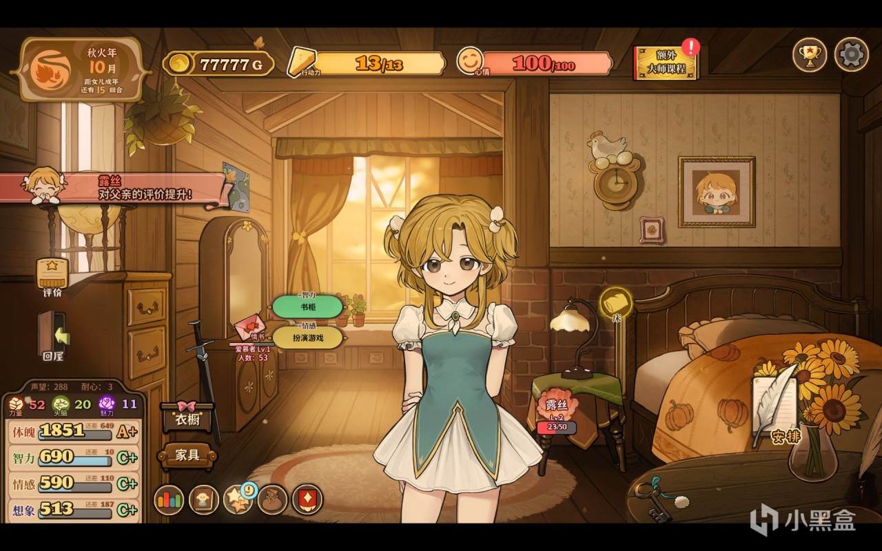 那還有6個成就,是關於女兒對父親的評價及好感的,而評價分數主要來自於女兒心事以及與女兒的聊天。