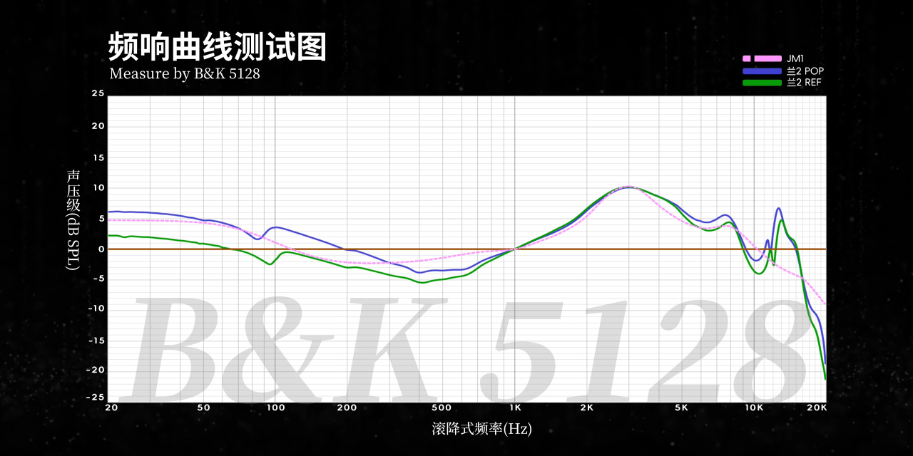 兰2POP版则是整个中低频抬升了近5dB,非常贴合JM1这条参考曲线了,只在中低频段以及中高频段稍有增益。会稍微加强声音的厚度,气氛以及明锐感,使得听感整体更抓耳。