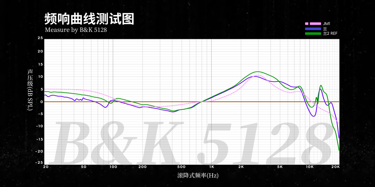 首先从频响曲线来分析,兰ii的REF版更接近兰一代。不过在低频与中高频段都有一些增益,会让听感更加动态和抓耳