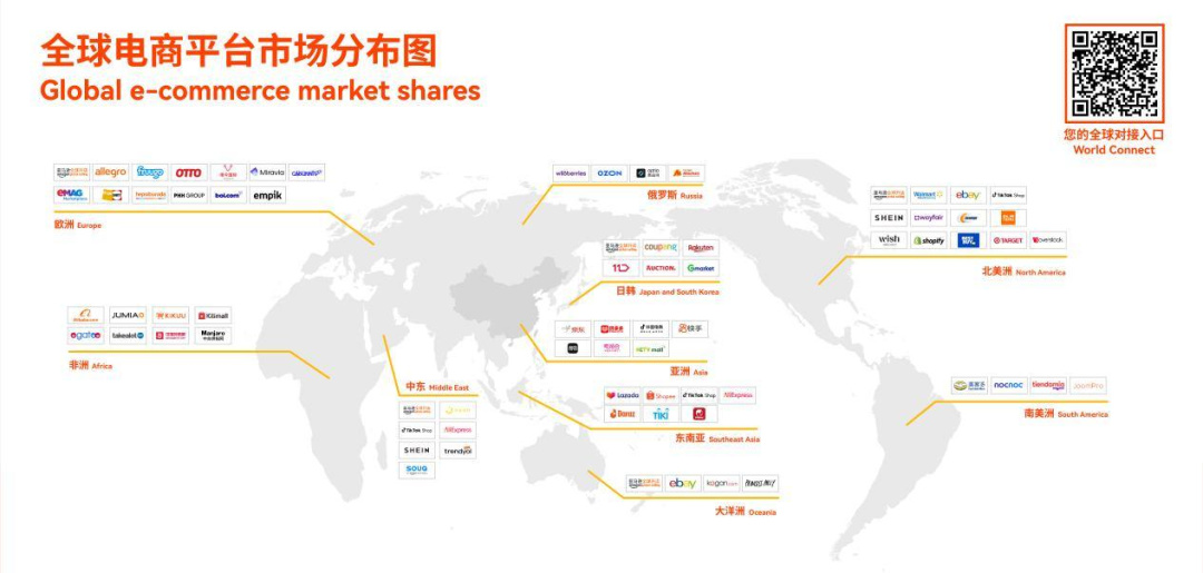 首先想做生意,得先有個店面。從亞馬遜到阿里國際站,再到美客多和 TikTok Shop,現場集結了 50 多家電商平臺,覆蓋亞洲、歐洲、非洲、南美洲、北美洲五大洲的 200 多個國家和地區。