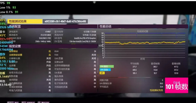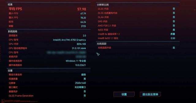 一般的游戏设置2K最高画质下,蓝戟A750的平均帧率为100FPS,开启XeSS性能模式后,帧率提升至115FPS,特效开组的情况下,都能流畅运行;