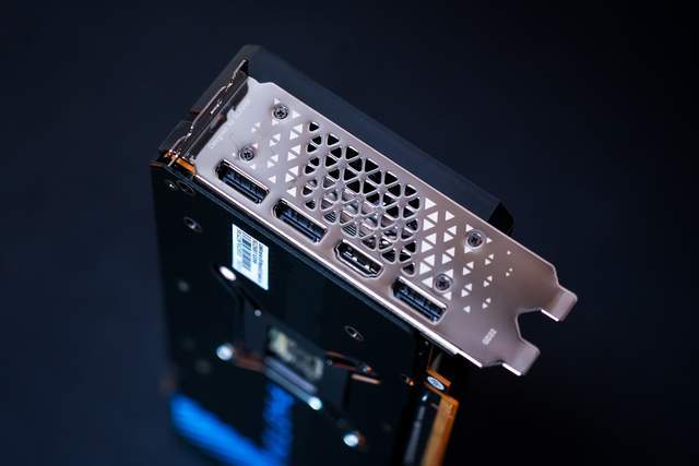 值得一提的是,显卡的背板采用了全金属材质,能有效防止PCB板弯曲变形,这种规格也只有在高端显卡才有的,现在ArcA750显卡已经成为了标配。这既延长显卡的使用寿命,还能辅助散热,让核心温度进一步降低。