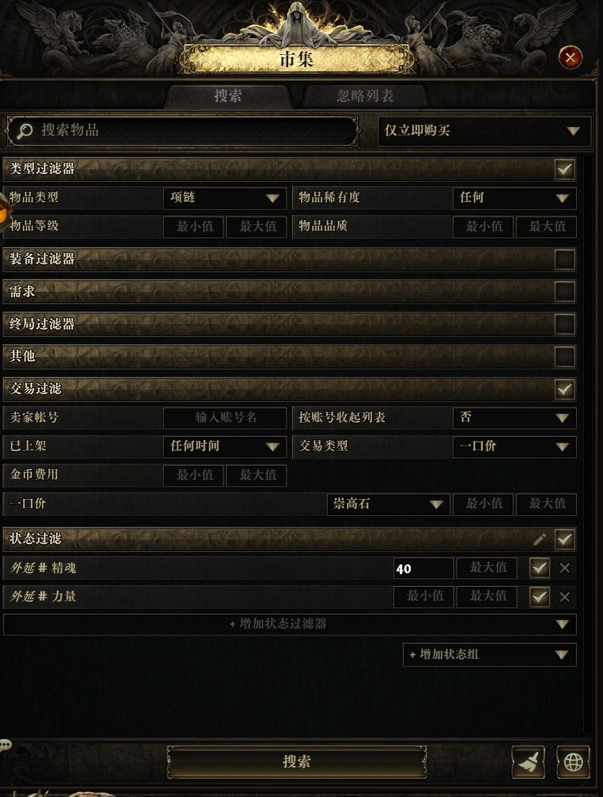 项链硬性指标是精魂,小二推荐放弃50精魂,直接搜40精魂左右价格便宜很多。