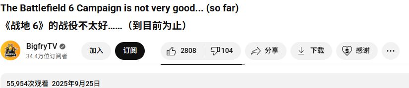 受邀測試三個任務關卡的內容創作者BigFryTV持相似觀點:"遺憾的是,與出色的多人體驗相比,戰役部分明顯缺乏打磨,更嚴重的是缺乏趣味性。充其量只能算合格水準。當我們對比其他公司的作品時,差距不可避免。體驗這三個任務後可以肯定:單人模式將是《戰地6》最薄弱環節。"