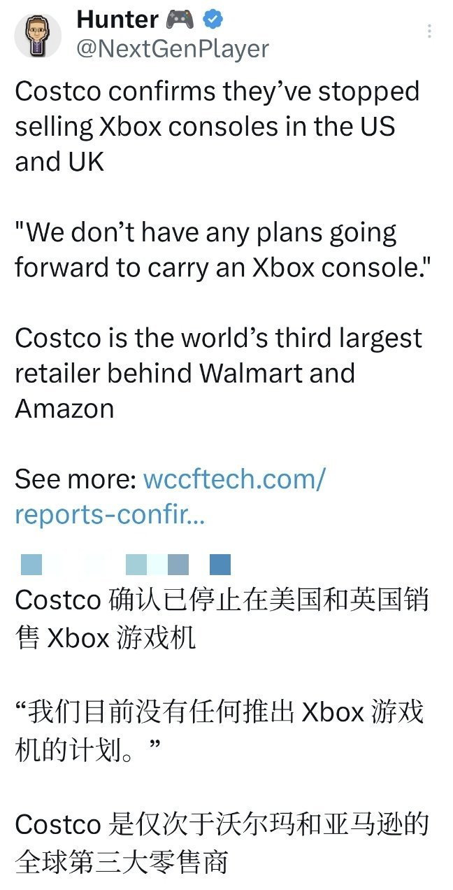 萊加里還得到了稍多一些的信息,他被告知這是"一項商業決策",並且好市多"目前沒有任何將來銷售Xbox遊戲機的計劃"。