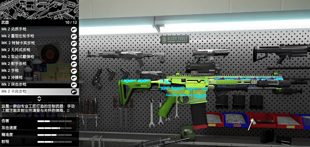 這把槍還可以在MK2武器工坊升級到更強的MK2卡賓步槍,在步槍中數一數二。