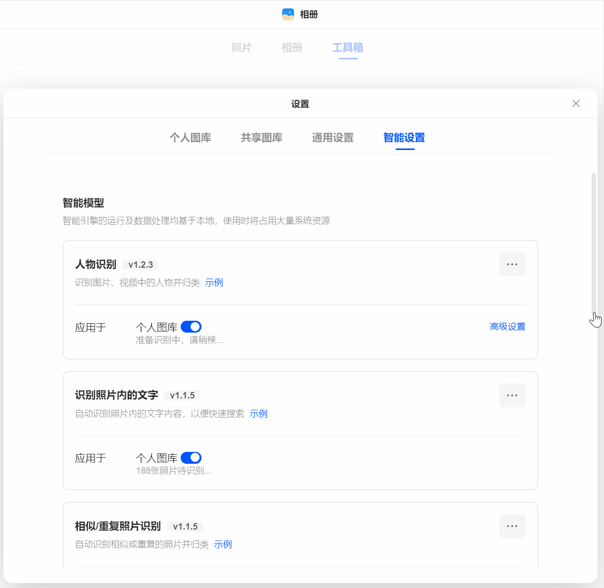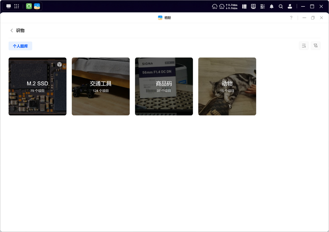 在上传照片后,绿联云的相册默认会按照时间线视图列出照片,而真正神奇的是,在启用相册的智能设置后,可以实现一系列AI相册功能。