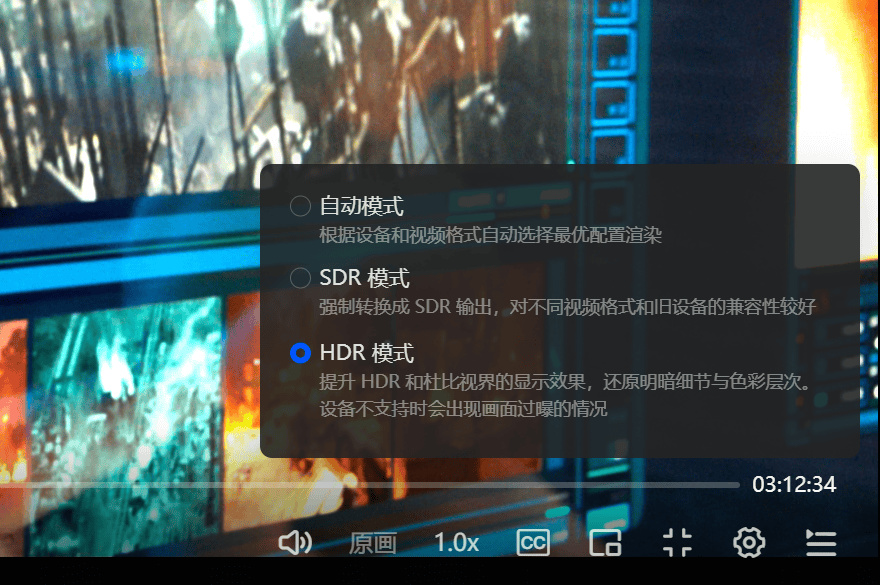 如果你是重度影音爱好者,绿联云还在Windows端的播放器上新增了“选择HDR模式”功能,让HDR片源的色彩和光影表现力更上一层楼,这一点绝对要好评。