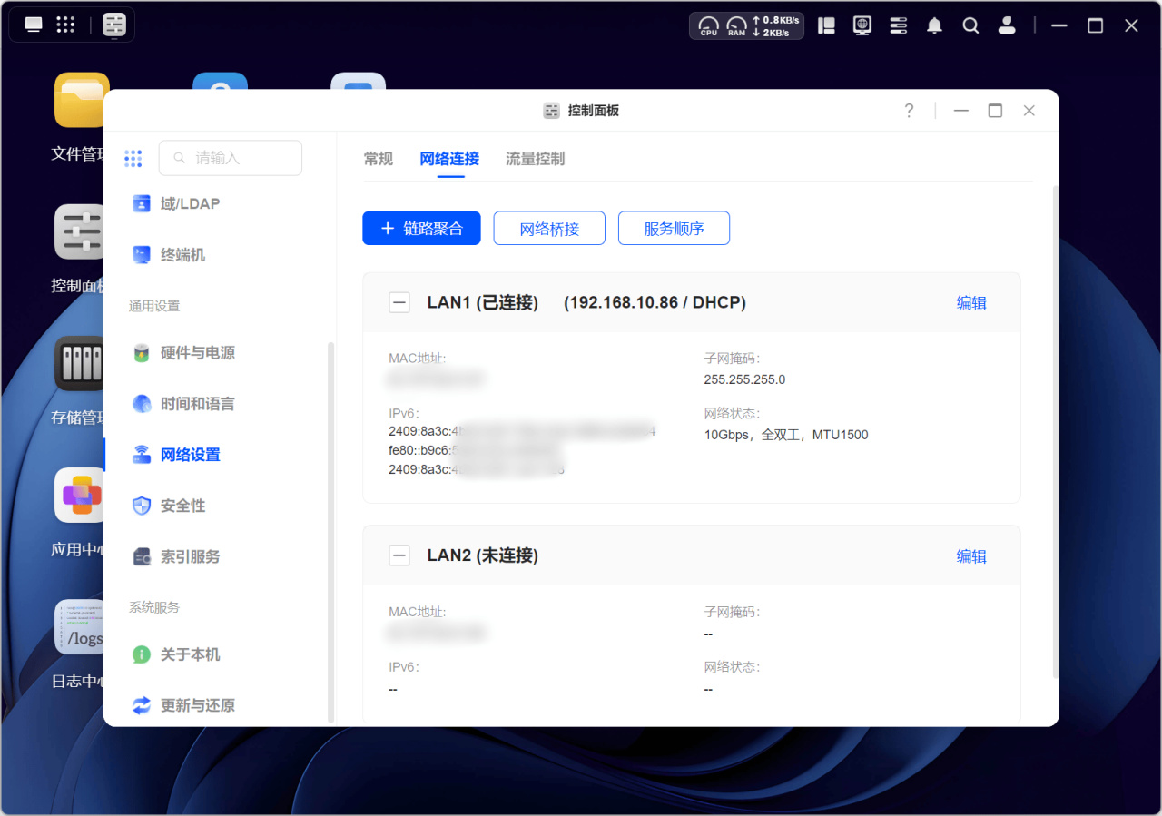 在前面讲到,绿联DXP4800 Plus自带了万兆和2.5G两个网口,而前者则是在同价位的品牌NAS中极为少见的配置。