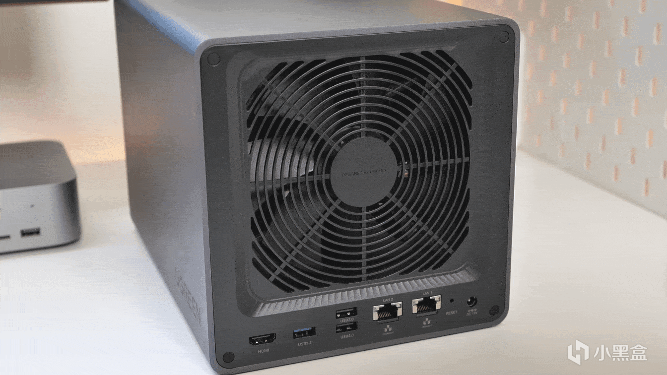 接下来瞅瞅绿联DXP4800 Plus背面,有尺寸巨大的散热风扇,以及更多的接口配置。