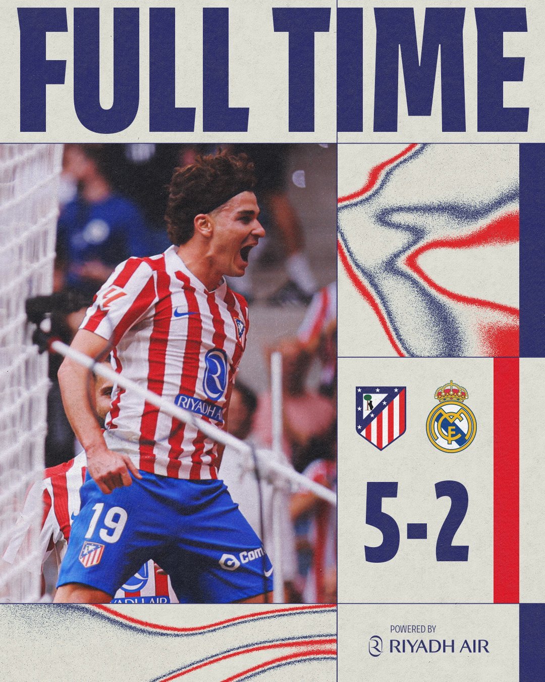 這場馬德里德比毫無疑問貢獻了本賽季至今最好看的比賽,雙方你來我往,小蜘蛛梅開二度狀態火爆,格列茲曼一劍封喉,姆巴佩、居萊爾破門難救主,最終馬競5-2大勝皇馬