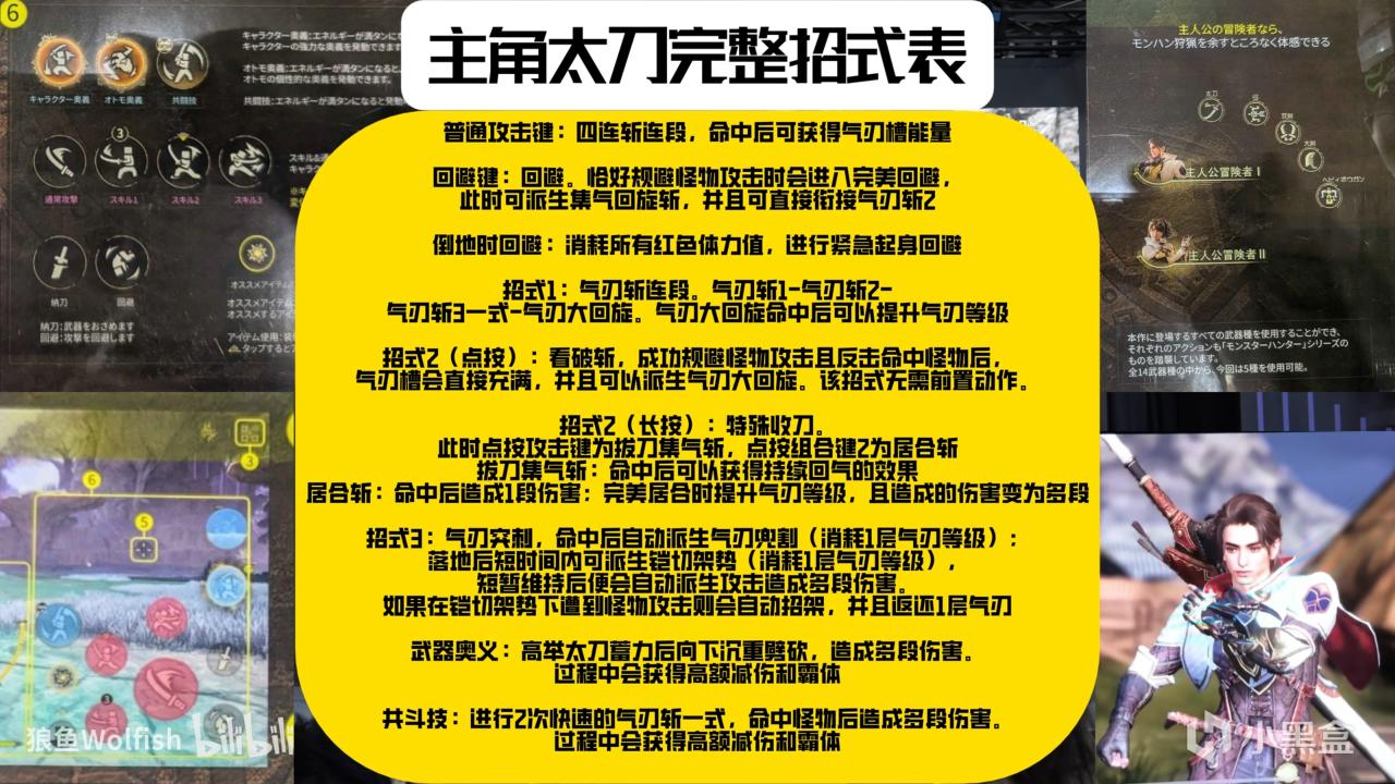 簡單來說,主角太刀是《怪物獵人世界》太刀的威力加強版,不僅有着更自由靈活,無需前置動作的看破斬,還增加了完美迴避後的迴旋集氣斬,不僅大大增加生存能力,還讓開刃速度大幅提升;氣刃兜割雖然不能像《怪物獵人荒野》那樣中途取消,但是在落地後可以銜接鎧切架勢(類似水月架勢),不僅可以拿來抵消怪物的攻擊,日常直接作爲追擊手段也有着非常可觀的輸出。