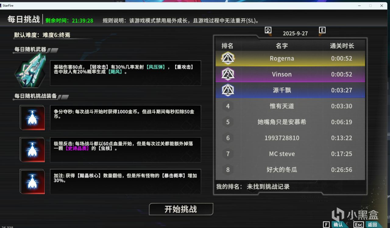 1.難度6,隨機武器,3個隨機終極裝備 。(每個人都是一樣的,次日更新)