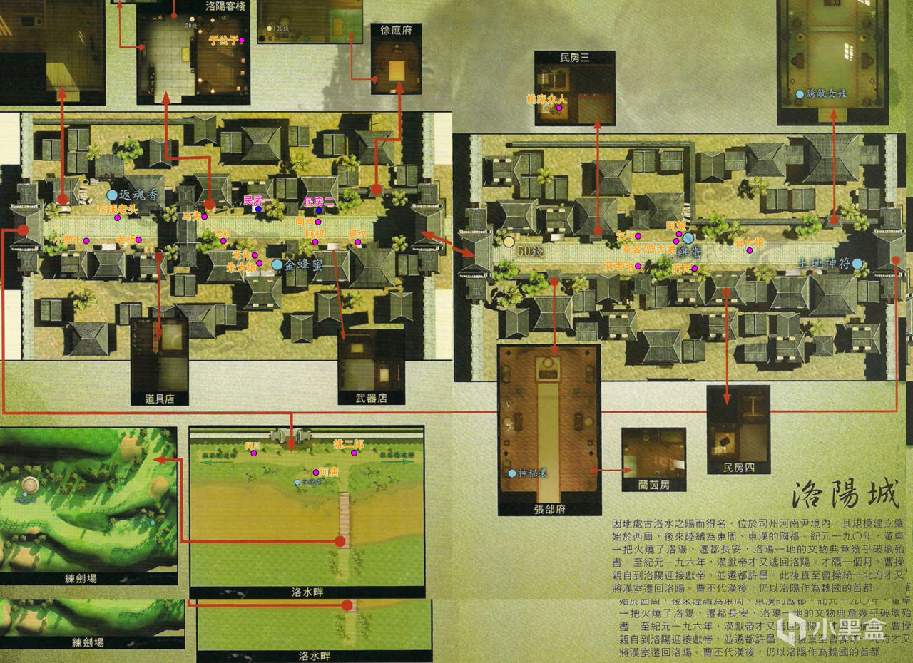 [主線]前往洛陽前段和向承交談選擇“花老爺家”(最優解)→前往洛陽後段和花老爺交談→前往客棧往右側走→前往洛陽前段的木工房和工人交談→前往洛陽後段的民房四和狗子的娘交談→前往北邙山盡頭觸發劇情進入戰鬥→劇情後來到洛陽近郊大地圖→返回洛陽→前往洛陽後段的民房四和狗子交談→離開洛陽→往右上走進入銅雀臺工地→和左上方的阿旋交談→前往洛陽後段的曹侍中府→前往張郃府的蘭茵房和蘭茵交談。