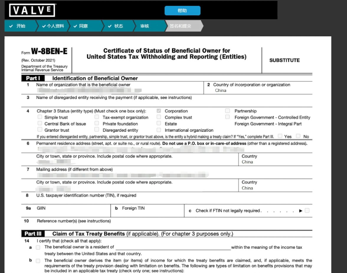 盒友們大家好,經常在Steam上賣遊戲的盒友一定知道Steam上一件最重要的事情,就是報稅,報稅中最重要的就是填報Steam開發者的稅務報表了,W-8BEN稅務表!那麼我們今天就來手把手教他家如何填寫W-8BEN稅務表!