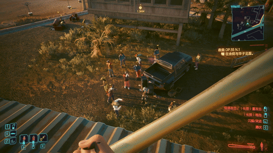先來到西風公寓,到圖示位置,看到三人後,對中間敵人進行掃描(鍵盤tab鍵),選擇引爆手雷選項即可。