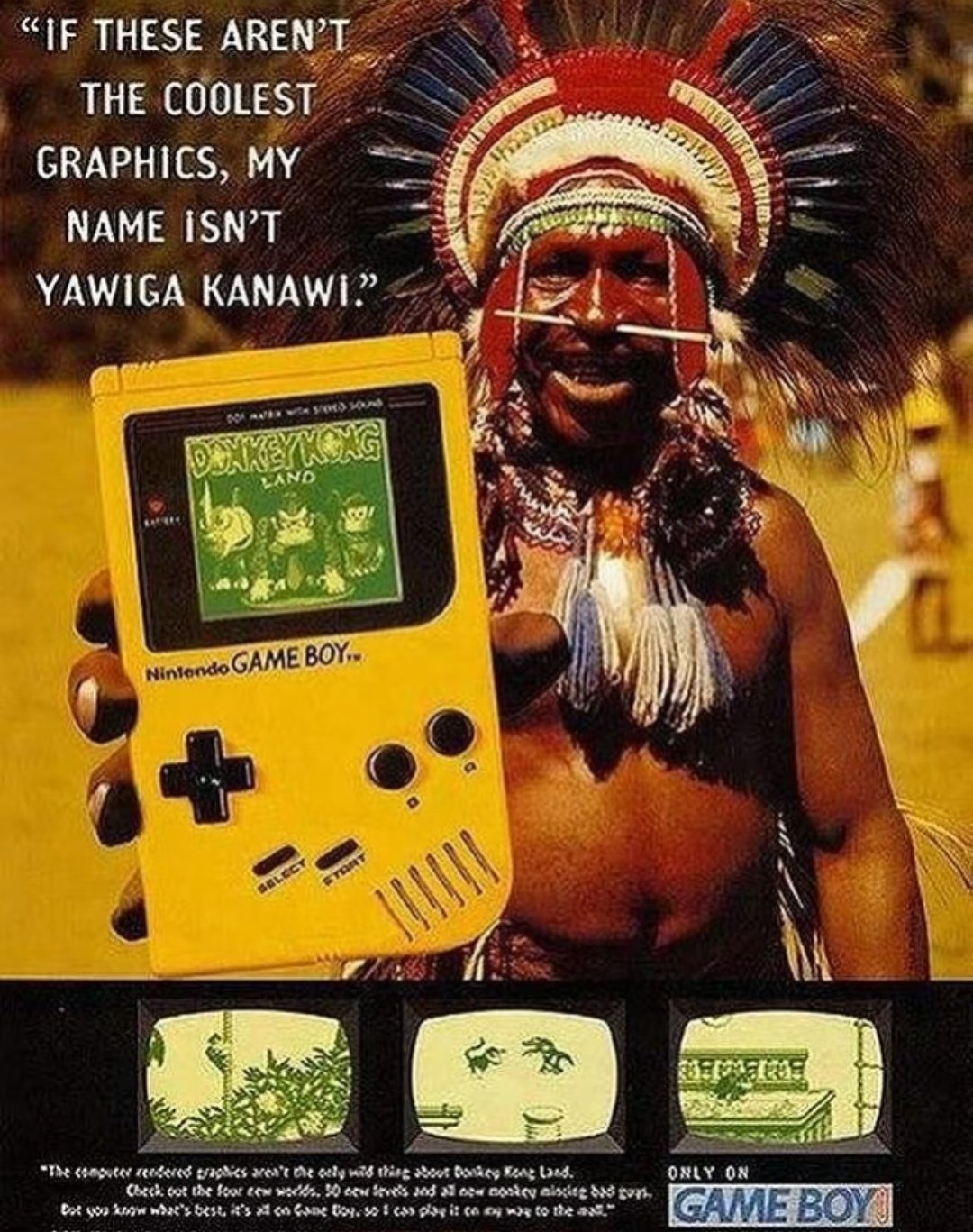《大金刚大陆》找了位风格独特的角色拍着胸脯说“要是这画质不酷,我就不叫 Yawiga Kanawi”,硬生生把Game Boy的像素画面吹成了“视觉盛宴”。