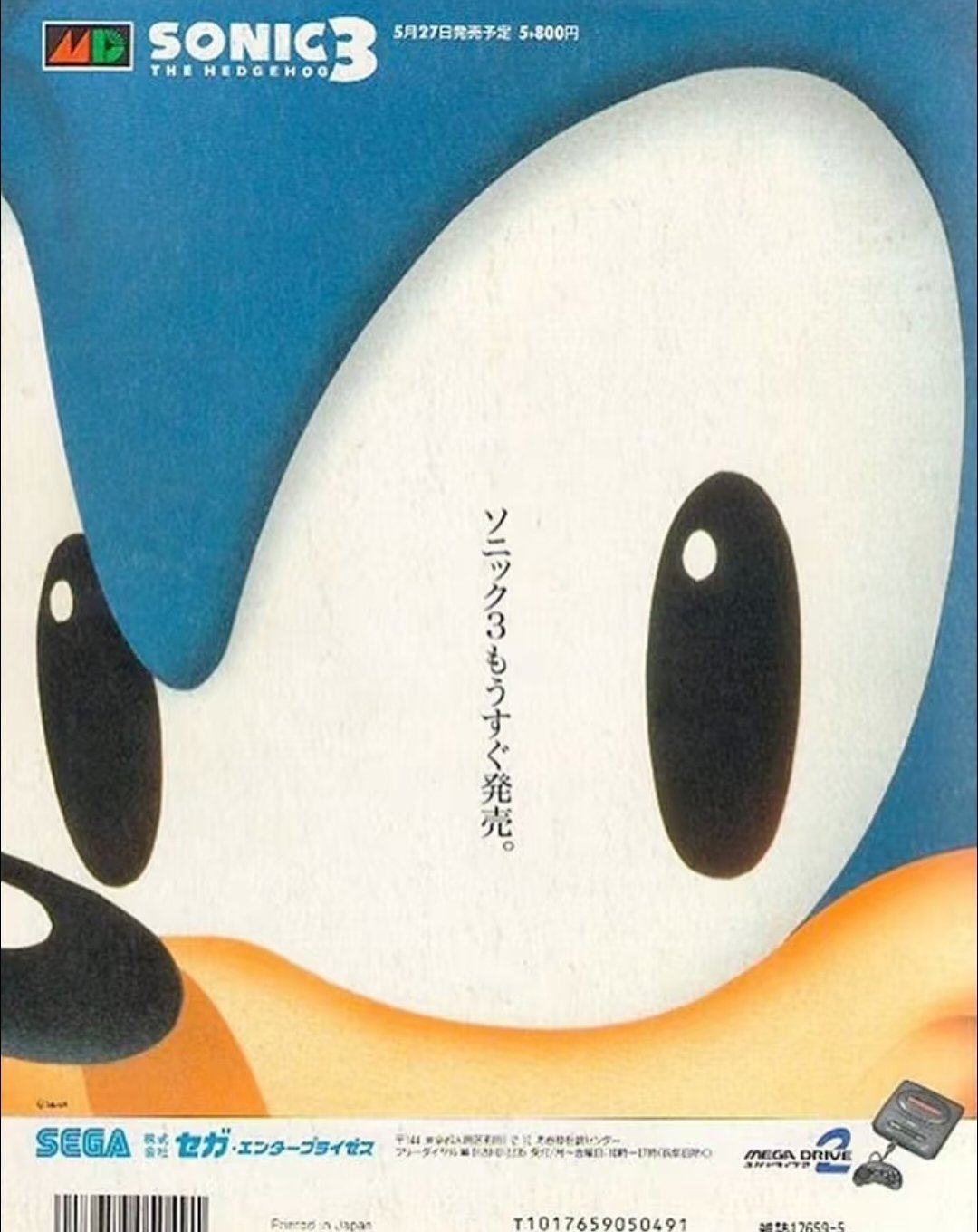 世嘉在《索尼克3》的广告里,用索尼克的“巨眼”占领整个画面,配上“索尼克3 即将发售”的醒目宣言,可以说是狂得没边,我强大到都没有你的容身之处,你就在我的凝视之下颤抖吧,直接和任天堂的马里奥“分庭抗礼”;