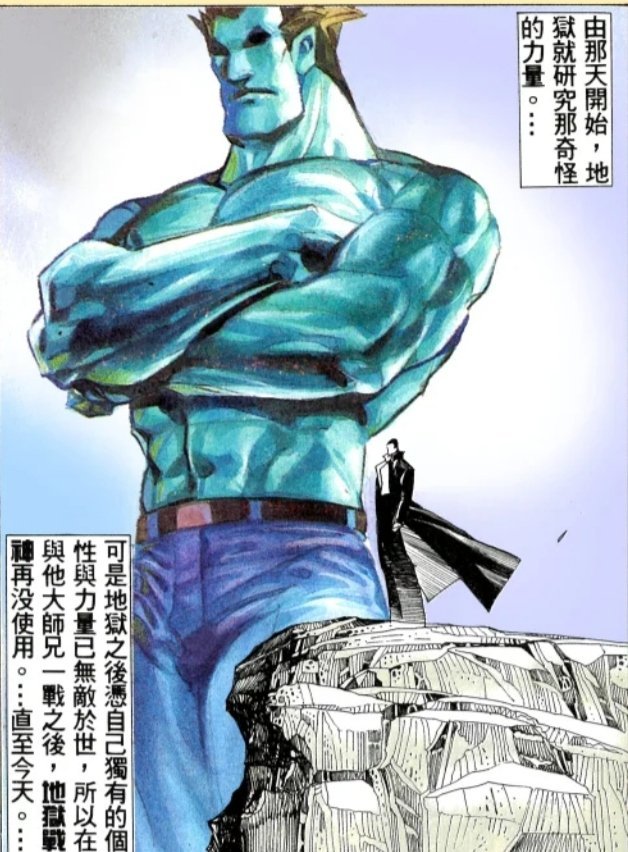 地狱本想同父兄一起对抗蓝道天武,但战神深知地狱天赋不下于自己,加上远超自己无上智慧,地狱才是天国的希望,将地狱击晕,留下自己的军牌还有达摩经,让自己的手下日蚀、月缺好好教导地狱?后,元志、元战掩护着地狱逃离。