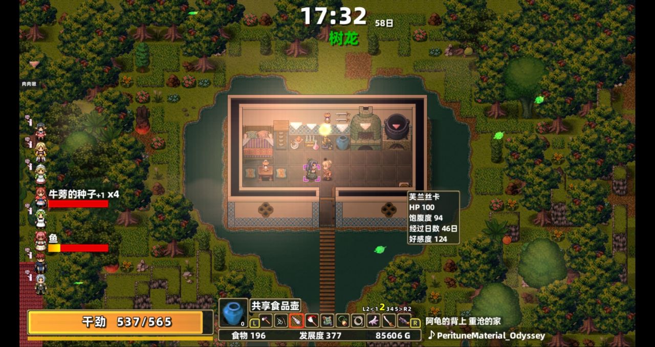 这游戏很杀时间,学习与适应成本很高,农业、锻造、缝纫、料理、钓鱼、养殖、调和几个方向都需要雇佣村民来解锁,而新的阶段需要完成村民的要求来推动,可村民间互相联动,常常是需要c工艺,就得帮a村民满足需求获得b村民的需求才解锁c。引导也很弱你得自己去试装置才能琢磨出东西怎么做。