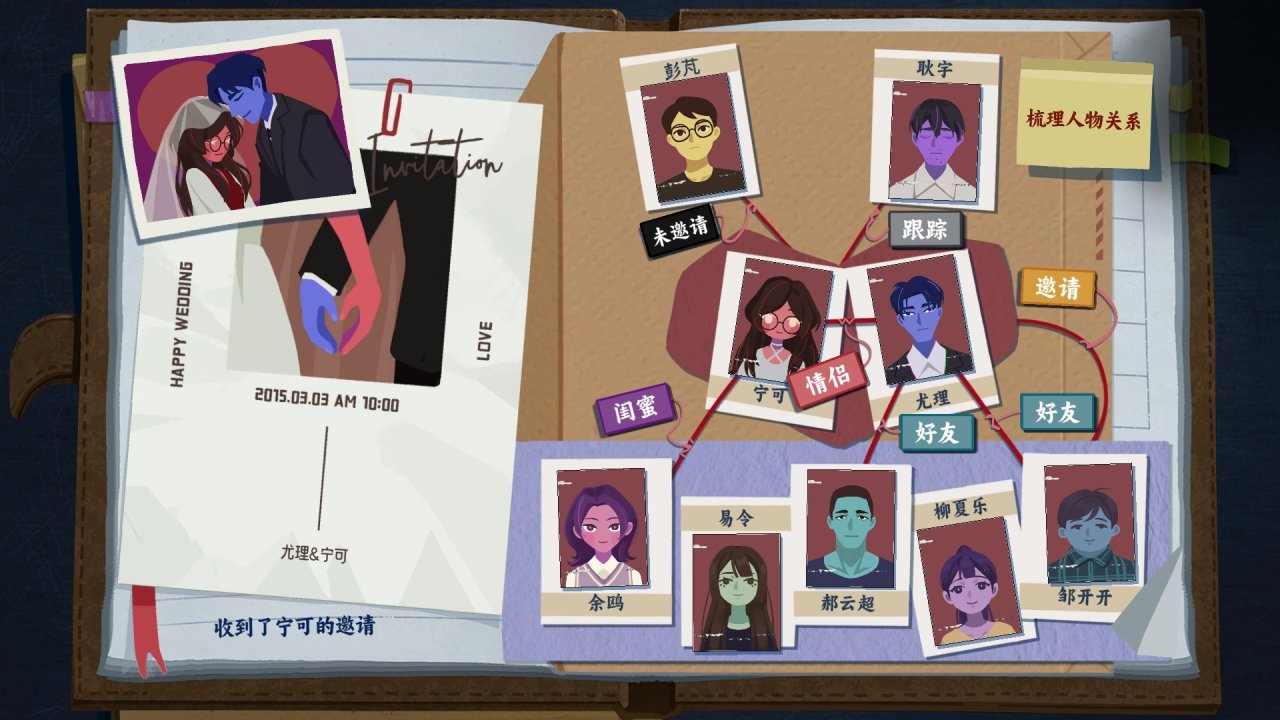 美术风格独特,简单色块构筑人物形象,我很吃这个画风。故事展开通过翻开不同日记进行,票据与照片的张贴合理有趣又具有设计感,还从细枝末节处为角色添色。虽说是推理游戏但基本把线索喂到脸上,很简单。刑侦环节从大范围缩小范围又继续划分区域排查,步步紧扣节奏很好,前面部分我真的很喜欢。