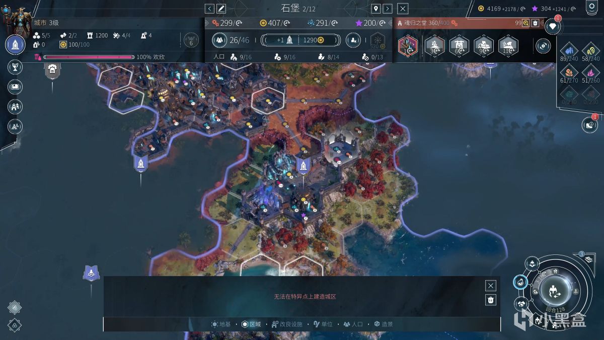 進入遊戲第一個直觀的感受就是系列中乾淨和簡潔的ui設計得以延續,比如常用的信息和資源顯示都放在了上方的狀態欄裏,下方則是各種可以交互的的選項。區塊選擇就能很清晰的看到作用,包括可建造、可產出這些,而一些詳細的信息內容都放在了選項的二級菜單裏。