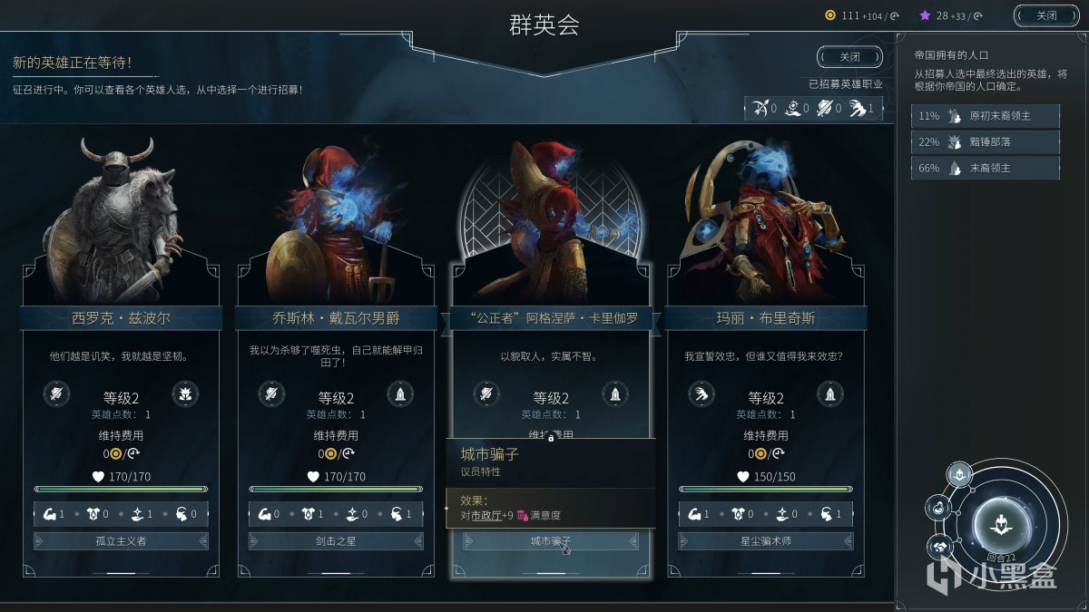 在野外探索時,通過選項可以結識到各種野外的小派系,在佔領之後就會解鎖這些小派系相關信息。這個時候就可以突破原來的種族發展,在界面的人口進度選擇小派系,就可以增長小派系的人口了。在不同的小派系多了後,可以宏觀的通過不同的顏色進行區分這些區域。