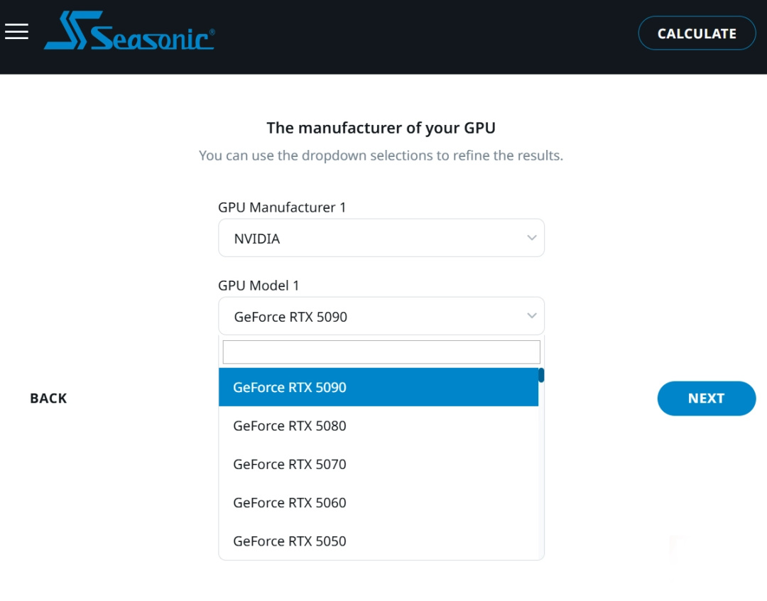海韻有一個功率計算器小工具,用戶可以手動選擇參與計算的顯卡,而在可選列表中,出現了RTX 5070SUPER和RTX 5070Ti SUPER兩款尚未發佈的顯卡。