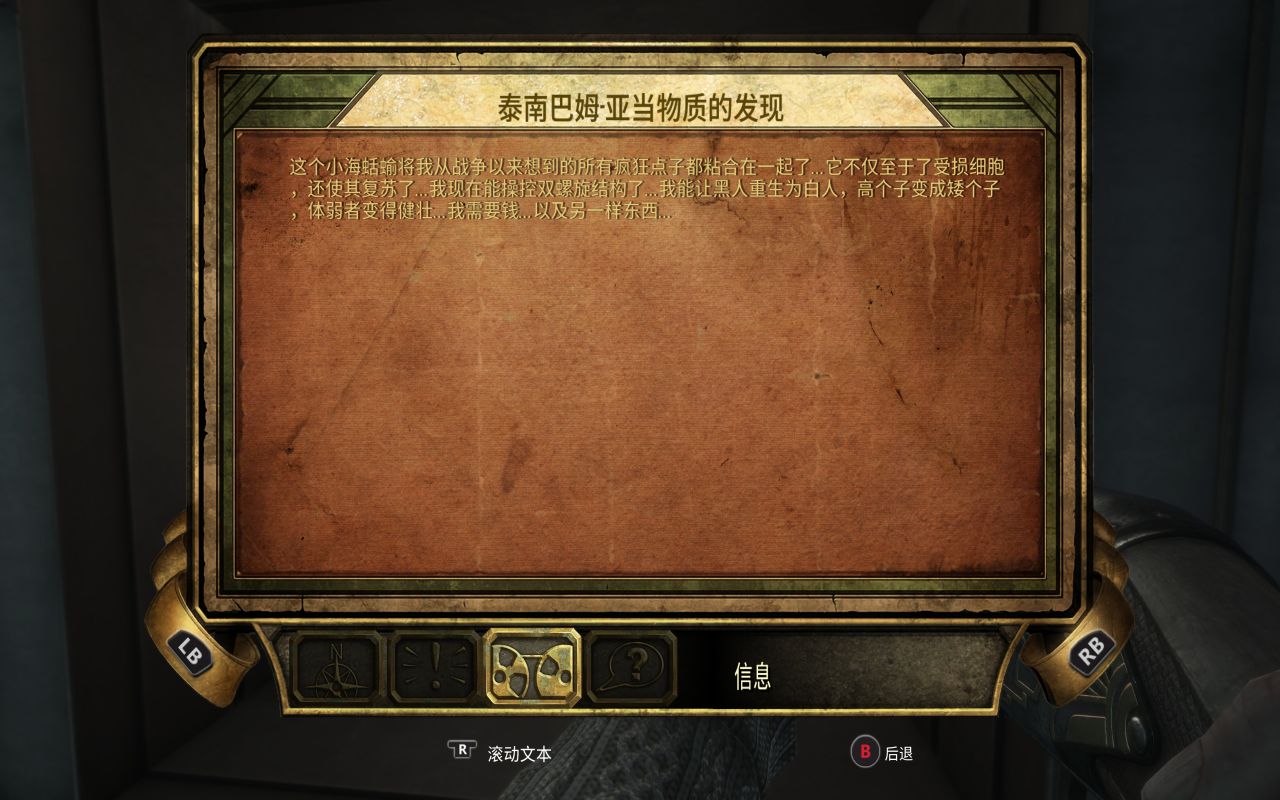 至此,本体部分就完结了。而它与《生化奇兵》系列的关联,则是由DLC《海葬》负责补全完成。