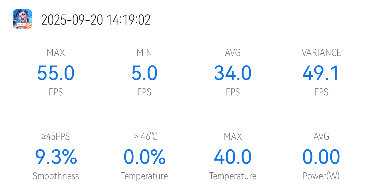 平均帧率和最高帧都有所上升,平均帧甚至来到了34帧,属于勉强能玩的级别了,温度甚至都有所下降,一局游戏下来最高温度为40°,能看出来鸿蒙系统的流畅性是要优于EMUI的。