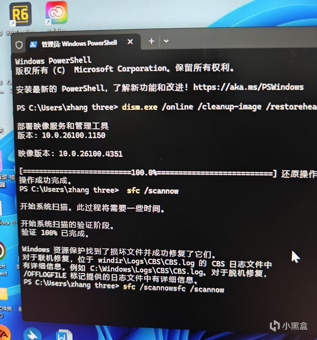 剛開始查到說是內存條出問題了,後來我拆機清灰的時候順便把內存條的金手指擦了,但是沒啥用。後來在小破站搜索藍屏代碼,有個視頻說可以通過系統自檢修復系統,我全程跟着視頻走,修復了一個損壞文件,我以爲解決問題了,但是並沒有。