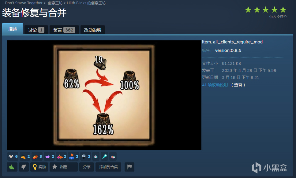 可以把不小心多做的裝備合併在一起,默認最高耐久是100%,想超過上限記得修改配置,不然90%+90%也只能等於100%,像我這種摳門的玩家就覺得虧了。