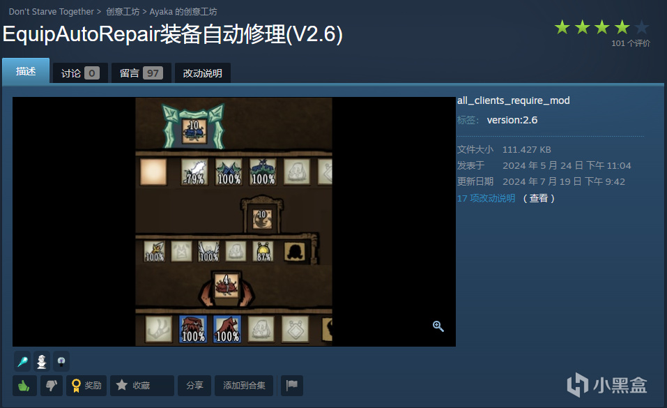 而且mod作者回復了我的請求,不知道人家玩不玩小黑盒,非常感謝!
