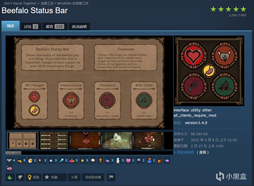 顯示牛牛的血量、飽食度、馴服度、還能騎多長時間等信息。