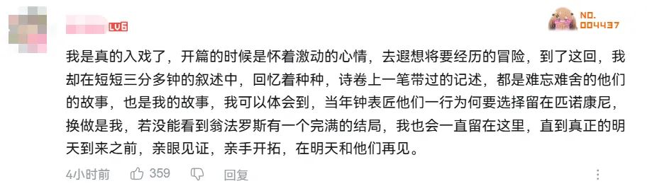 能看到身爲看板孃的三月七被世界溫柔以待,她珍視的夥伴們拼盡一切找到了她,只爲帶她回家。當衆人團聚,三月七眼裏帶光訴說感謝的樣子,我想我大概一輩子都忘不掉了。