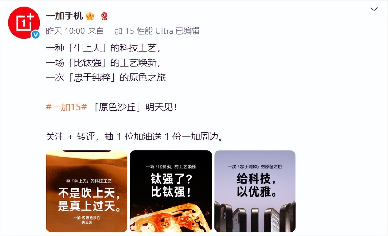 这个指的是新机一加 15 的新配色 ——「原色沙丘」。