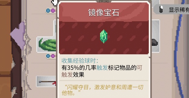 武器子弹打完了,上弹真空期太长了怎么办?肯定是投掷物来弥补,但是投掷物龟速投弹太鸡肋了,这时候就需要宝石来解围,只需要吃到经验球即可触发!升到最高品质将拥有恐怖的50%触发概率,行走的绞肉机,满屏投掷物在向你招手!
