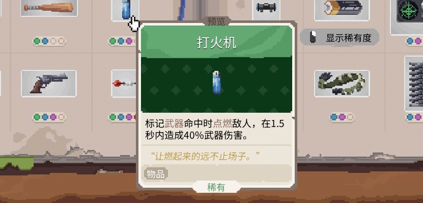 这里就统一讲了,像老鼠、蛇、电池、打火器这些给武器附加属性效果的道具,可以拿,尤其是道具效果贫乏时