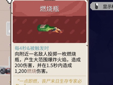 合成道具。需要打火器和瓶子合成,最好用的投掷物之一