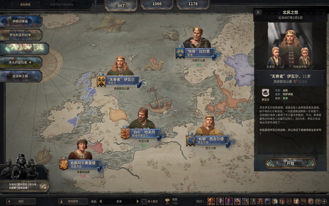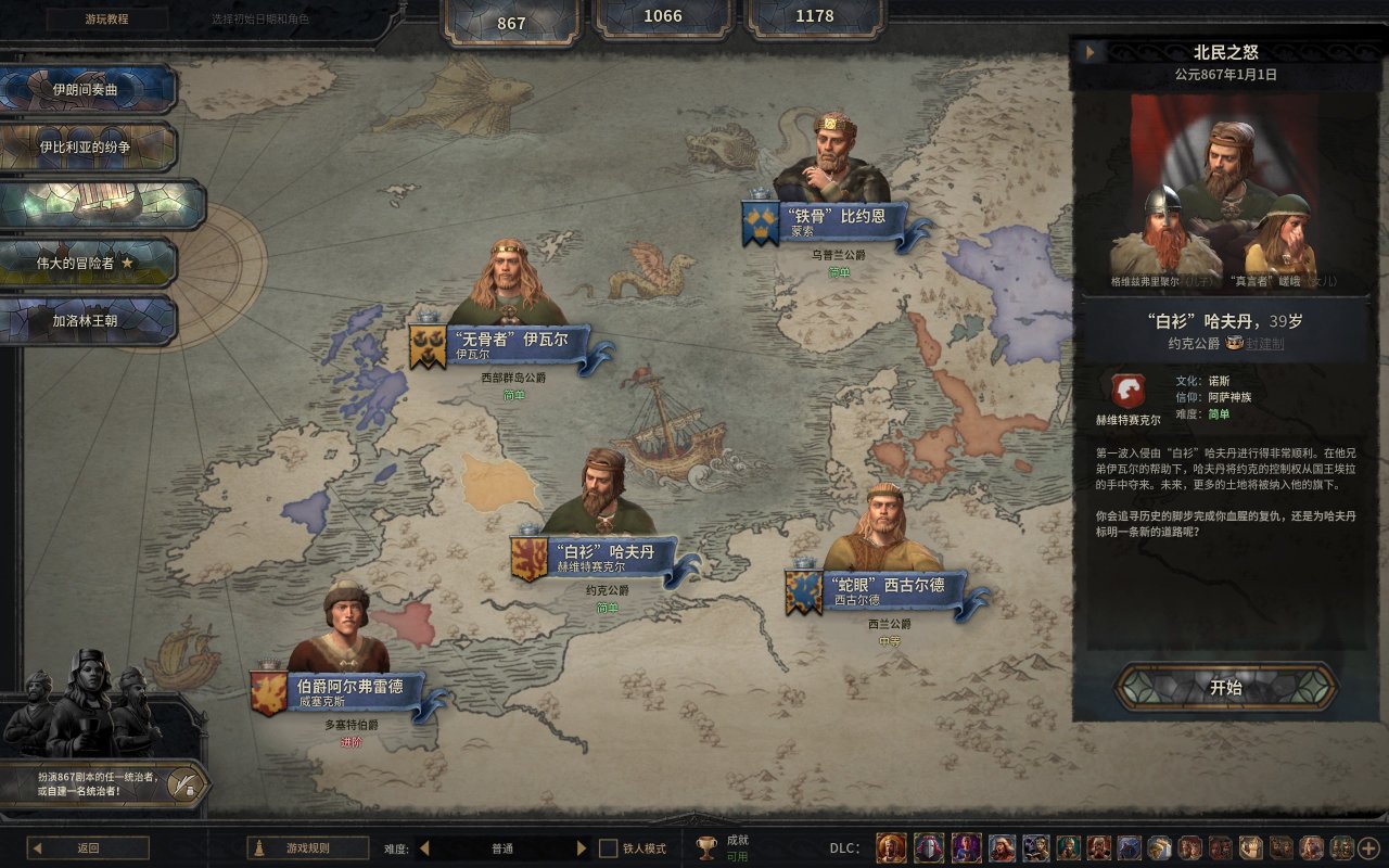 介绍;作为最为狡猾的维京首领,他在苏格兰和爱尔兰都有一定的基地,但是这位狡诈的野心家最终没能完成自己的野心就突然去世。(虽然ck中他很年轻,但从史料中,这位应该是最年长的(拉格纳诸子))